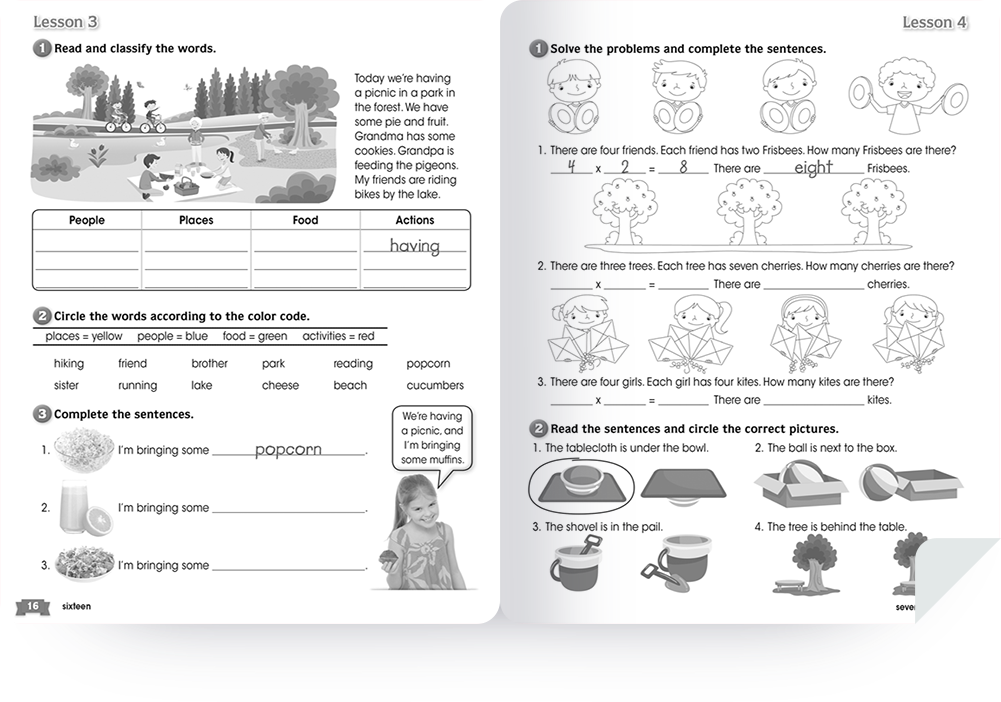 - challenge their math knowledge in English, with a page of Math Puzzles each unit!