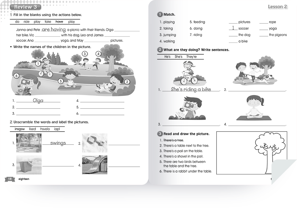 The new Activity Book has a clear, comprehensive structure – its nine units review, recycle and consolidate the language presented and practiced in the Student’s Book, making it easy and predictable enough for children to work on it independently. The four lessons focus on vocabulary, language structures, reading comprehension and writing. The Review lesson at the end of each unit consolidates the previous lessons, as well as practicing functional language.